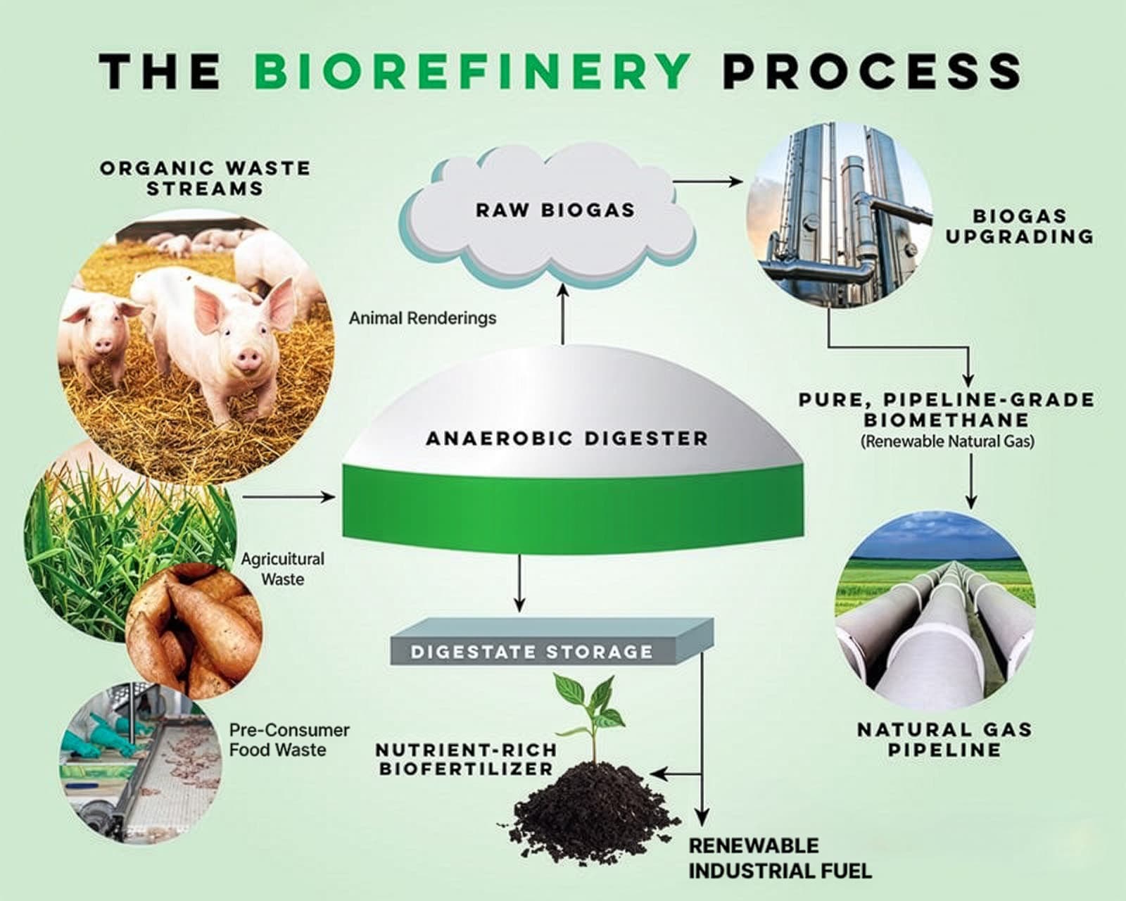 We capture value from residual organic byproducts, including pre-consumer food processing material and agricultural inputs, transforming them into clean energy. This diverts materials from landfills while helping protect regional waterways.